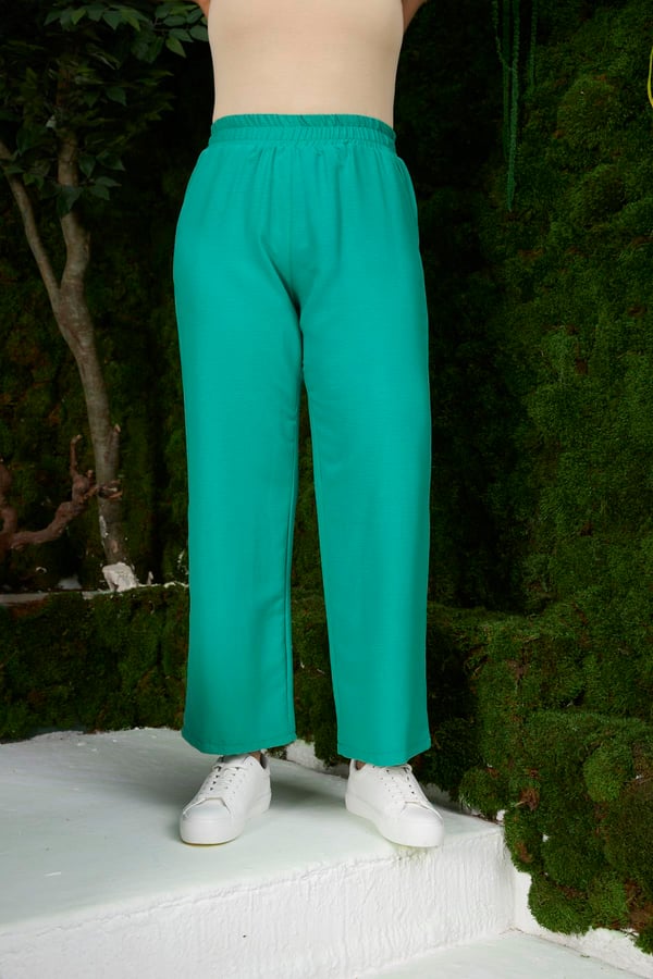 Beli Lastikli Geniş Paça Büyük Beden Lacivert Pantolon