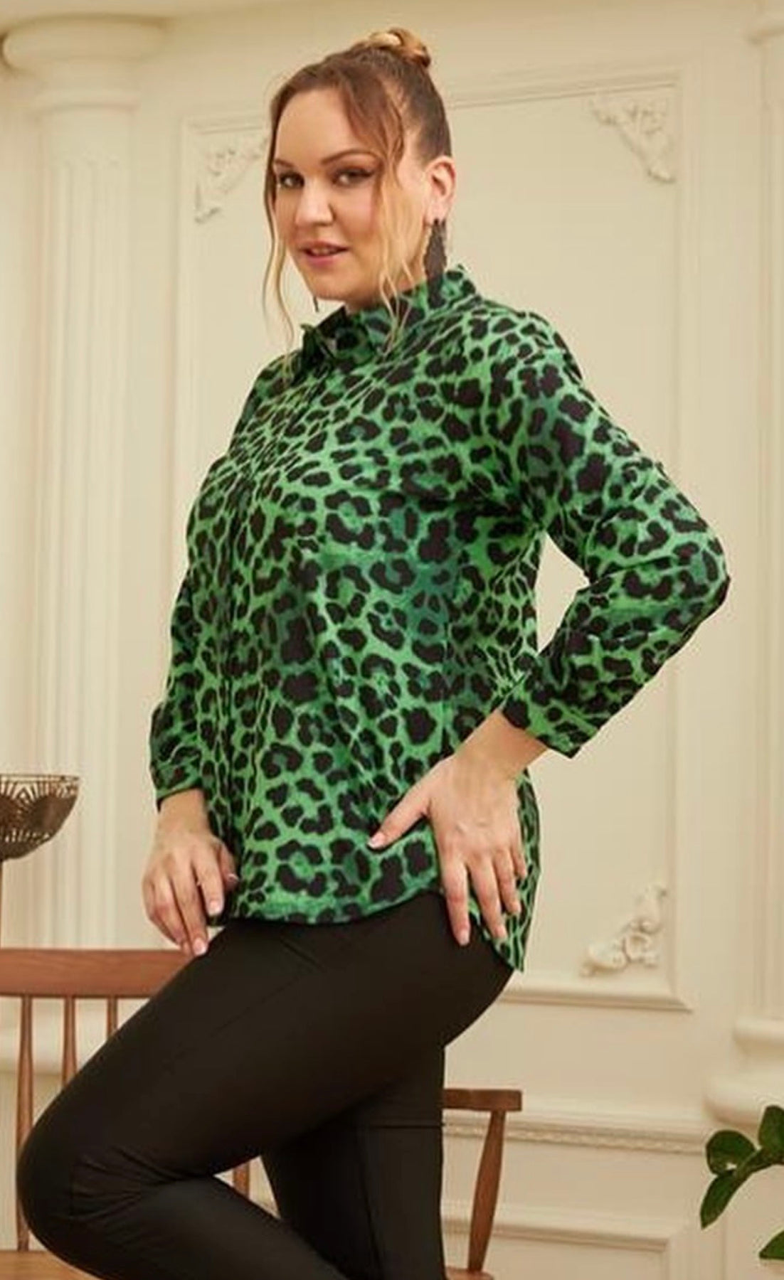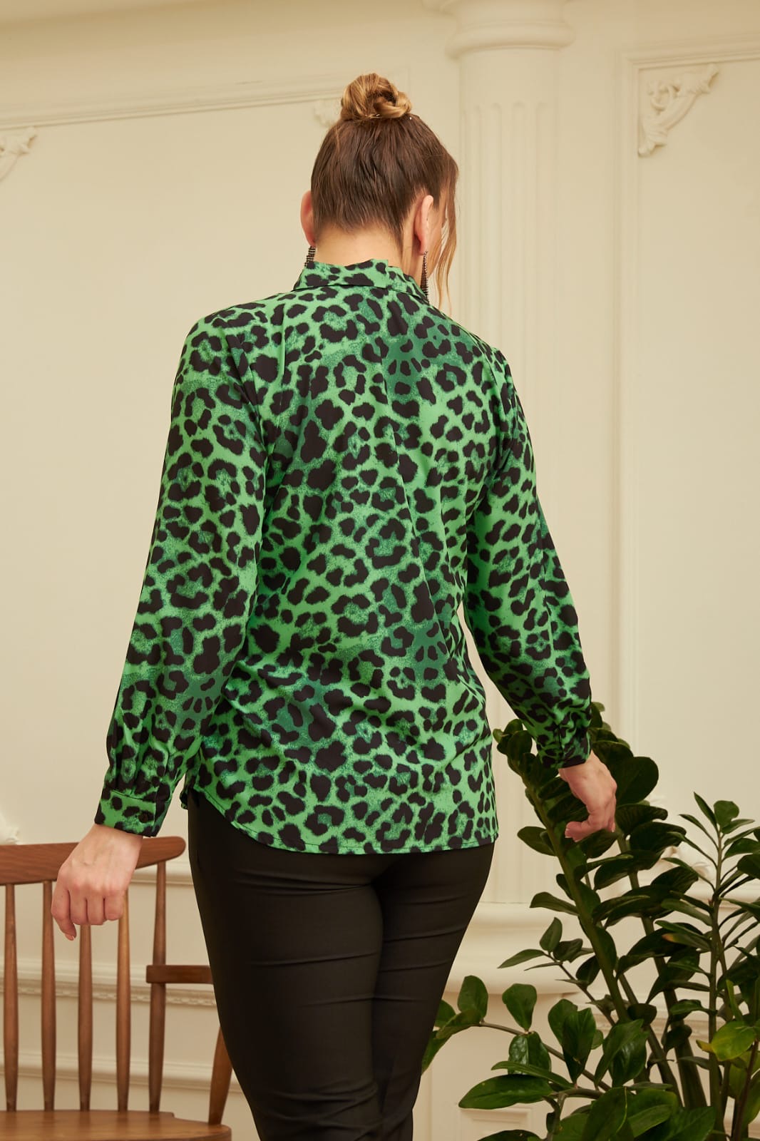 Büyük Beden Leopar Desenli Saten Gömlek